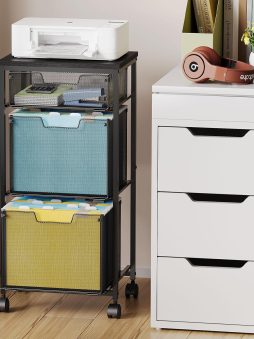 • Sale! 3 Drawer Mobile File Cabinet for Home Office, Rolling Filing Cabinet on Lockable Wheels, Hanging File Folders Organizer, Utility Cart Storage and Organizer, Printer Stand, Black