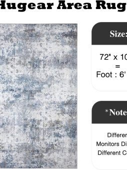 • 6x9 Washable Rugs Grey Blue Hallway Large Area Rug Indoor Accent Rug Abstract Non Slip Low Pile Carpet Distressed Throw Rug for Bedroom Living Room Office Dining Room Kitchen Laundry Room