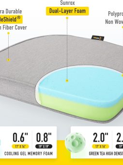 • SUNROX Gel Memory Foam Chair Cushions, FadeShield Water-, Stain-Resistant Durable Reversible Seat Cushion Pads with Ties for Indoor/Outdoor Kitchen Dining Office, 17"x16", Set of 4, Heather Grey