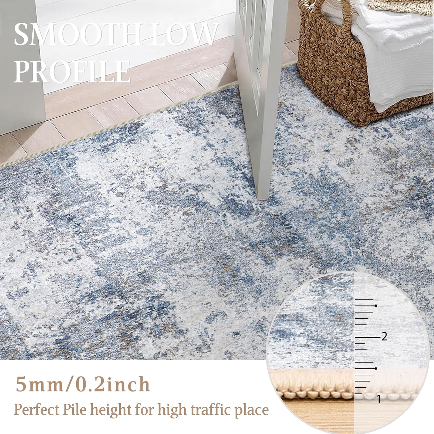 6×9 Washable Rugs Grey Blue Hallway Large Area Rug Indoor Accent Rug Abstract Non Slip Low Pile Carpet Distressed Throw Rug for Bedroom Living Room Office Dining Room Kitchen Laundry Room