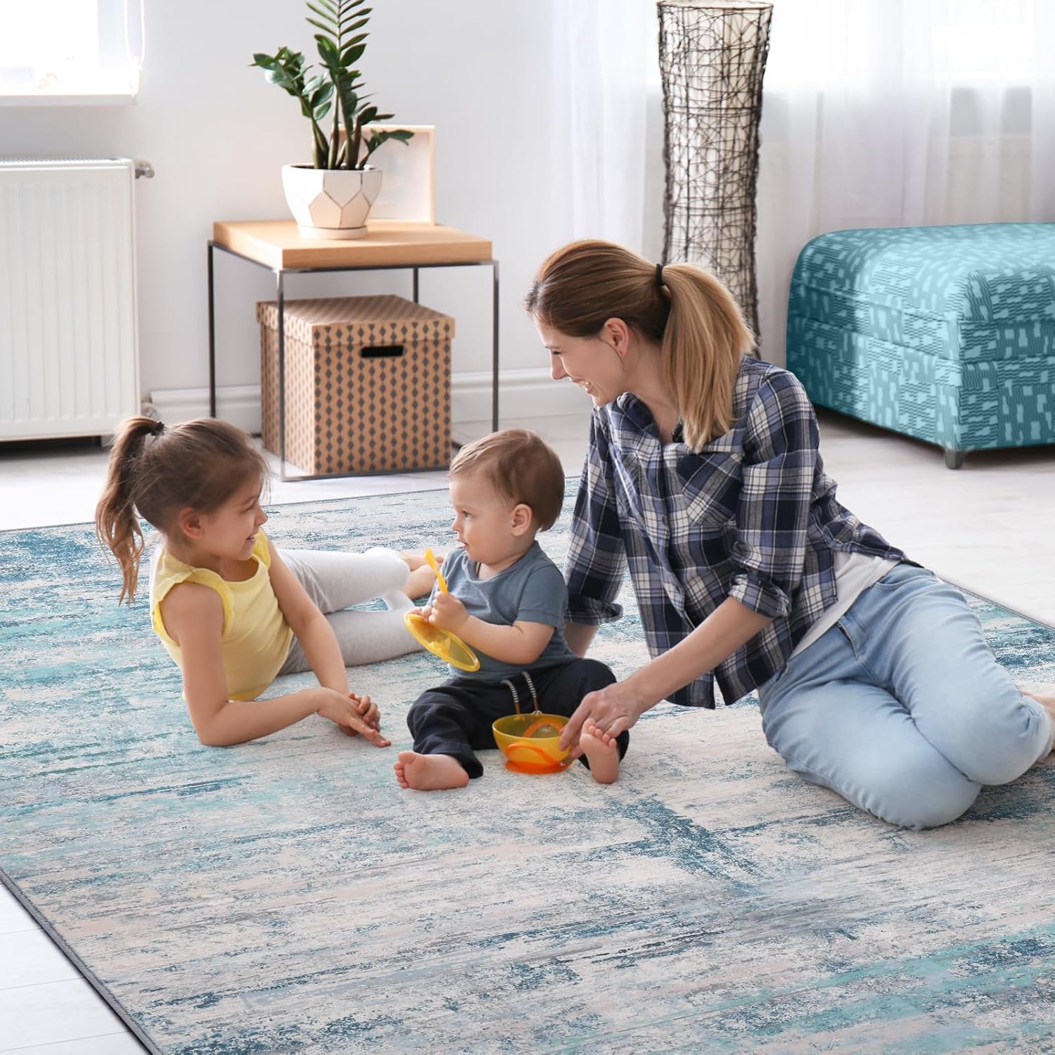 Abstract 5×7 Area Rug, Modern Throw Rugs for Living Room, Washable Soft Large Non-Slip Accent Carpet Floor Mat for Dining Room Office Bedroom – Abstract Teal/Grey